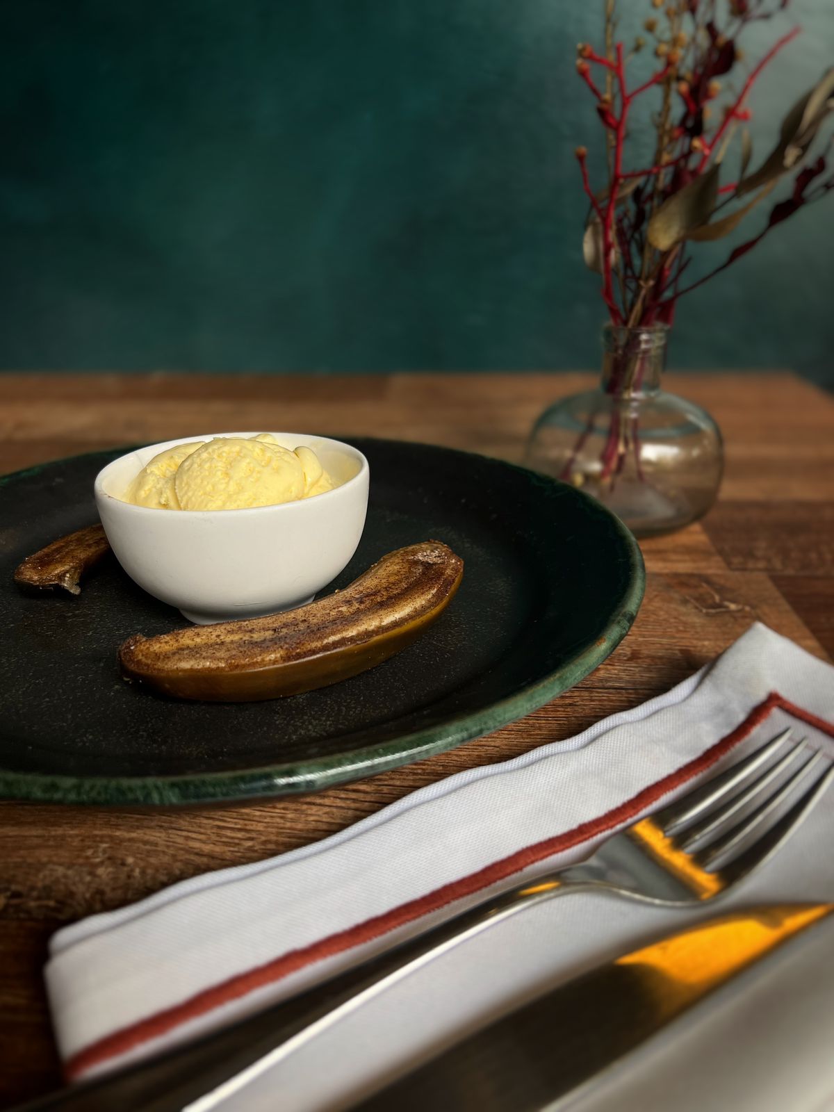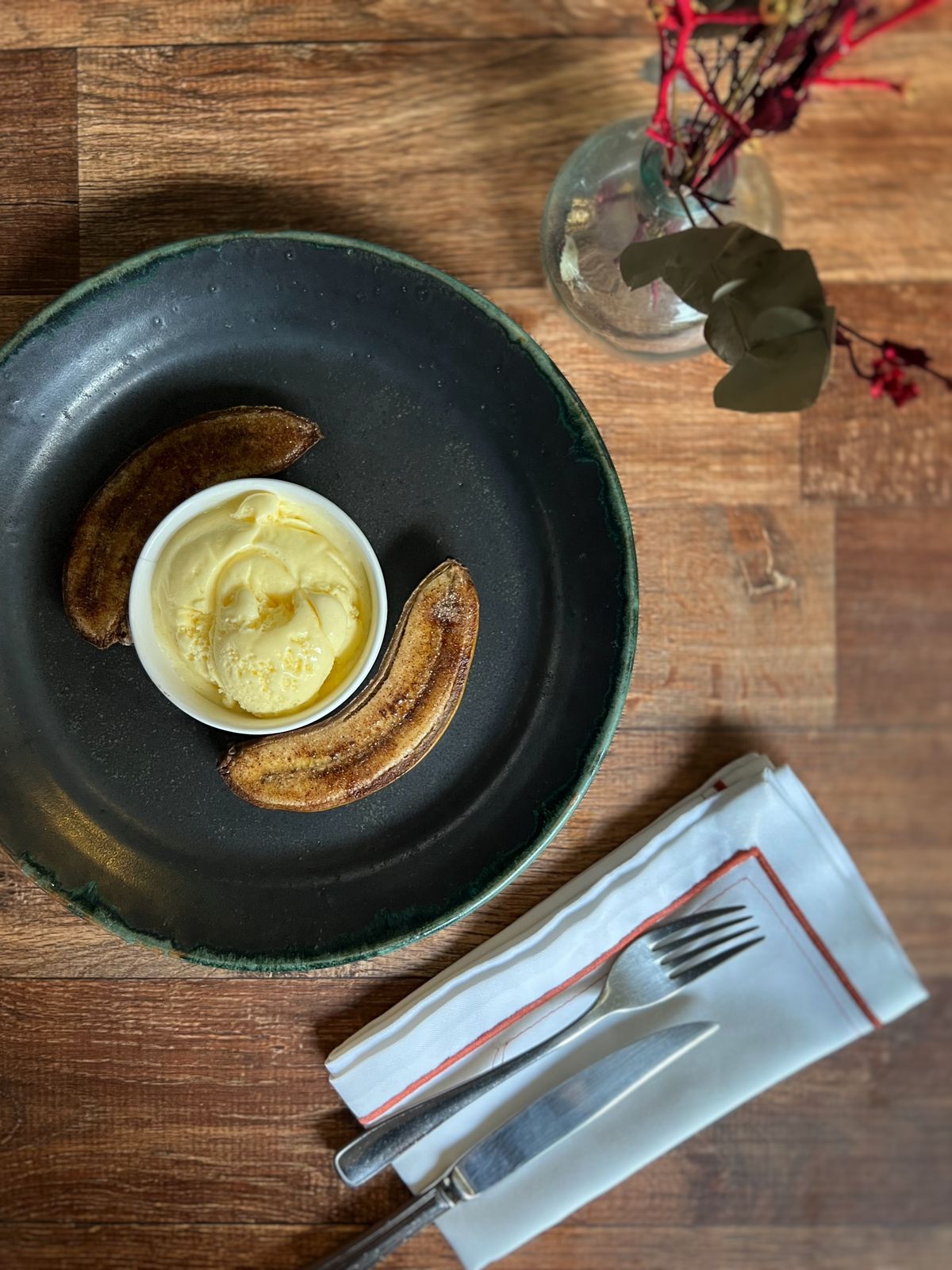 Banana ao forno com sorvete de creme
