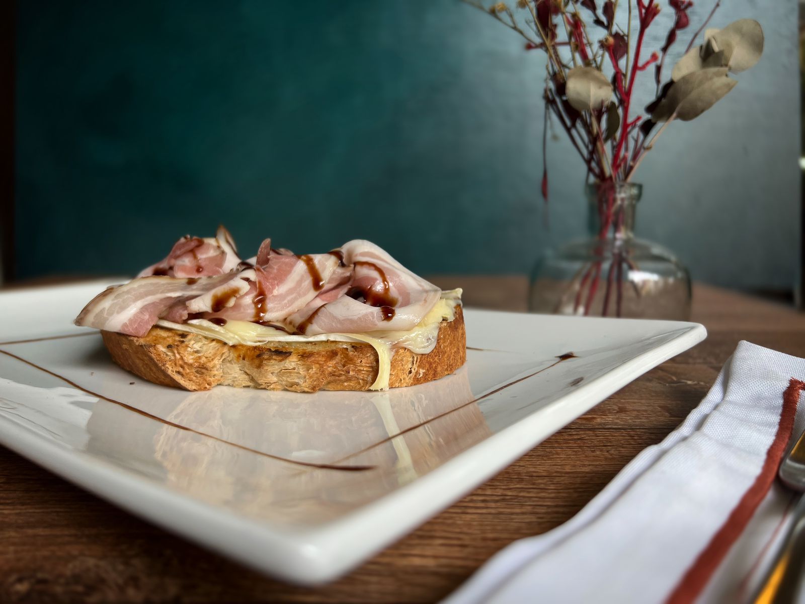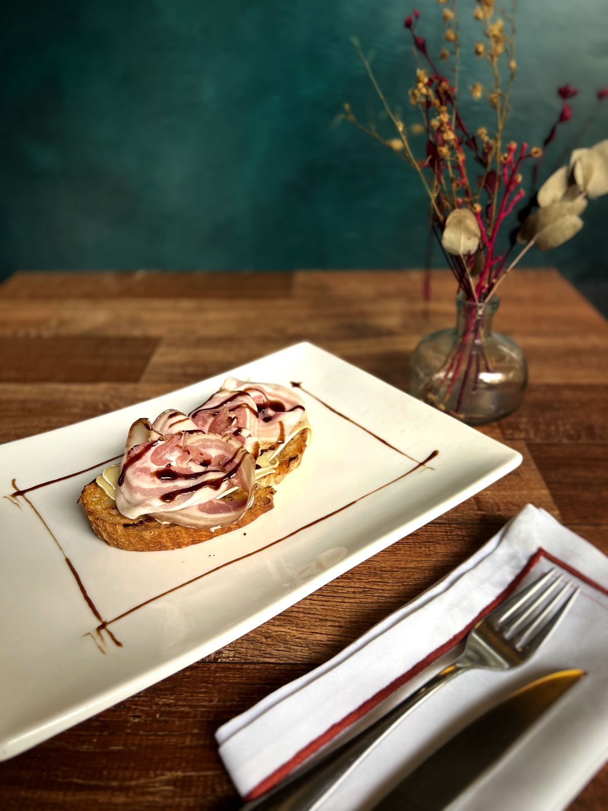 Bruschetta de porchetta defumada